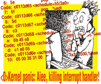 panic strings are "Aiee, killing interrupt handler!" and