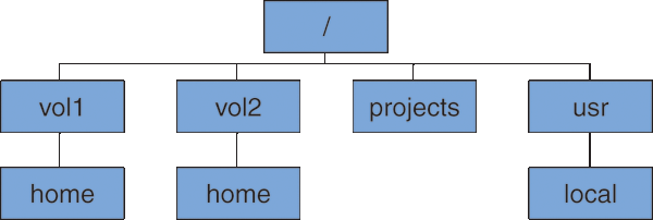 Export of /vol1/home, /vol2/home, /projects, and /usr/local builds this pseudo tree