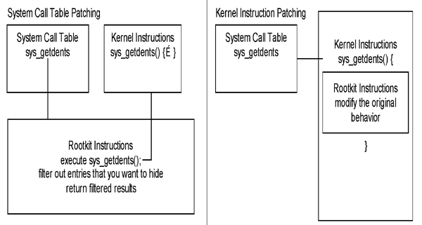 How a kernel rootkit subverts the normal system calls