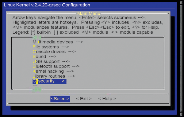 Make menuconfig with grsecurity patches