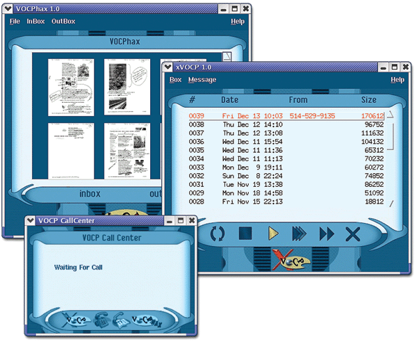 VOCP GUIs -- Call Center, faxing, and message retrieval interfaces