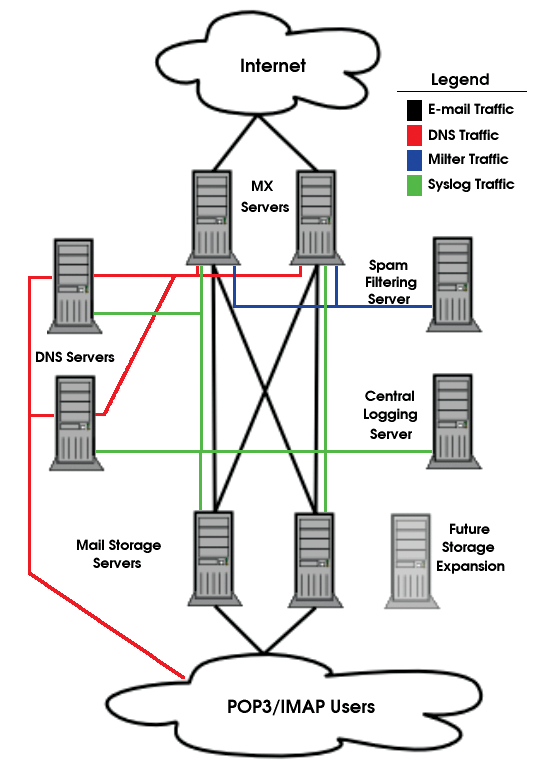 Email system layout and traffic paths