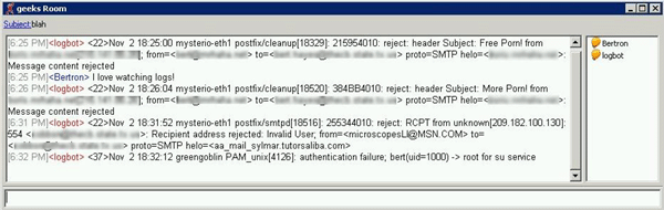 An example of a conference room using the Exodus jabber client in Windows