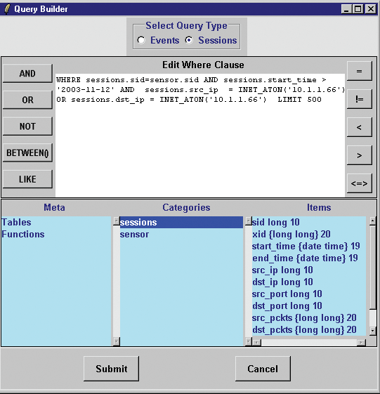 Sguil query builder