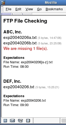 FTP file checking report