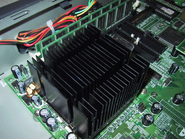 The processor is cooled by a passive black heatsink without a fan
