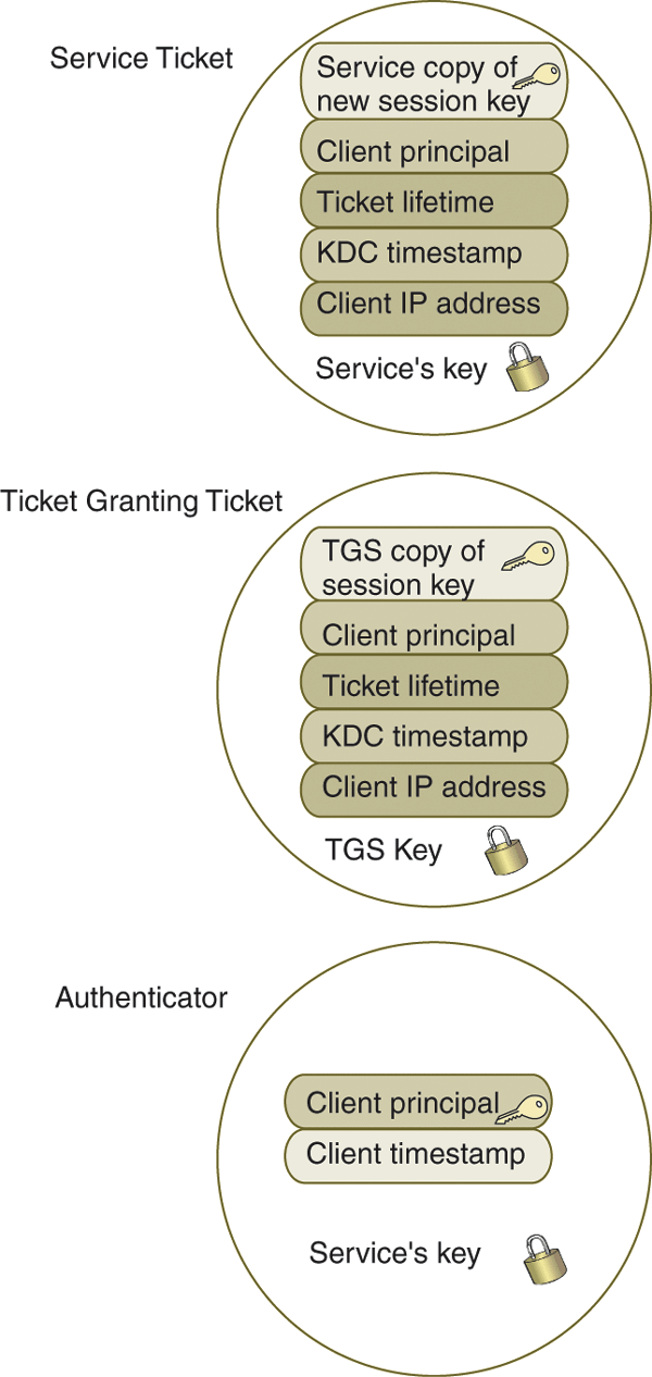 Figure 2 The client receives the information in this encrypted reply, and because it was encrypted with the client's key, it is capable of decrypting it. This gives the client its session key and a TGT that is still encrypted by the key of the TGS.