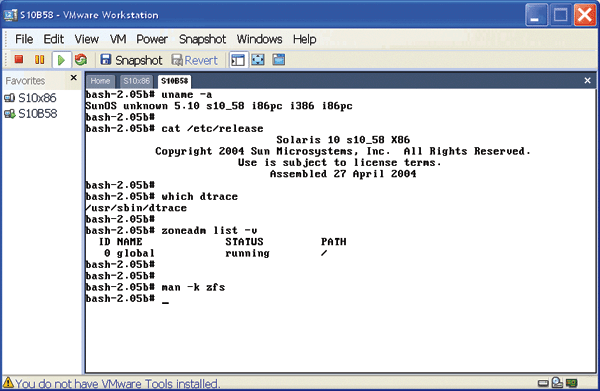 Solaris 10 x86 in text mode within VMware