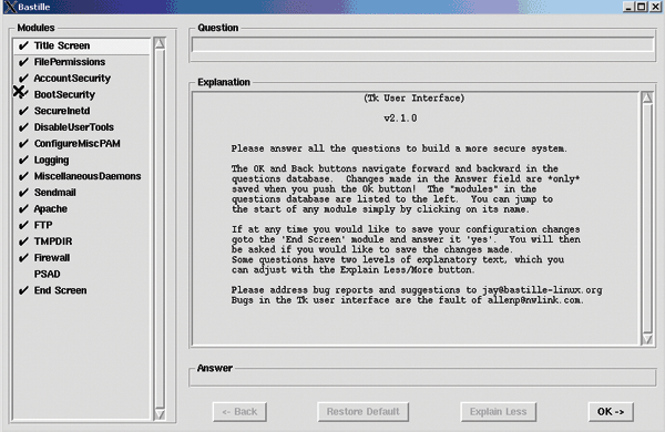 GUI intro screen