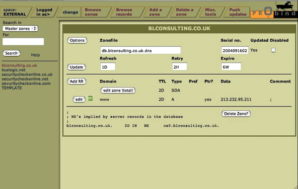 Zone editing in ProBIND