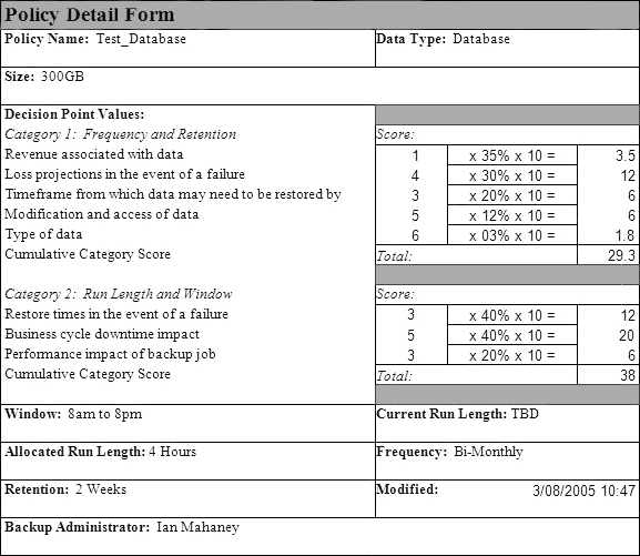 Figure 2 Policy detail form (test database)