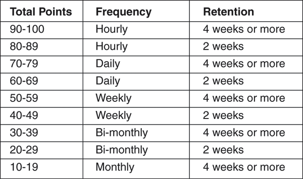 Frequency-retention table