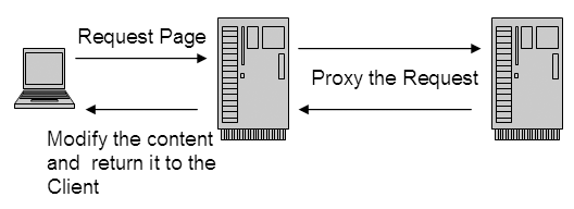 Traffic flow from a user; through the proxy; out to the destination server and back