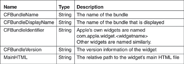 Required property list keys