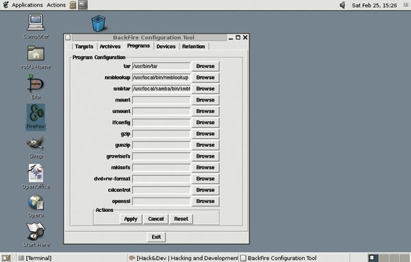 Configuring BackFire program resources
