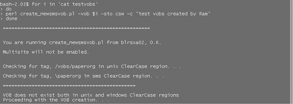 New Vobs are created by invoking the createnewvob script from a bash shell "for" loop