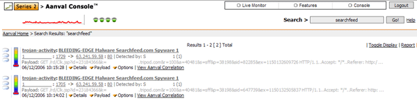 Searchfeed query result in Aanval