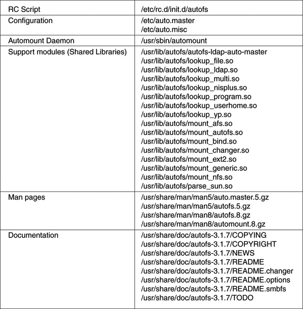Location of autofs files when installed