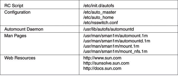 Location of Solaris Automounter files and other useful resources