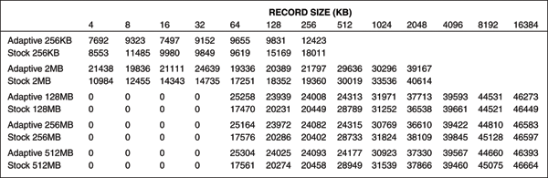 Backward read test result (in KB/sec)