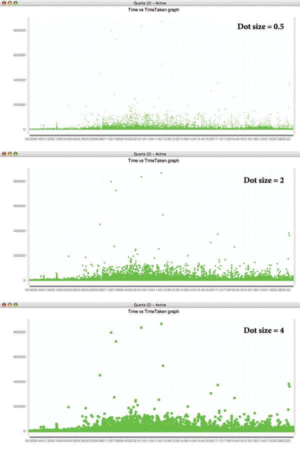 The variations of the Time vs TimeTaken graph