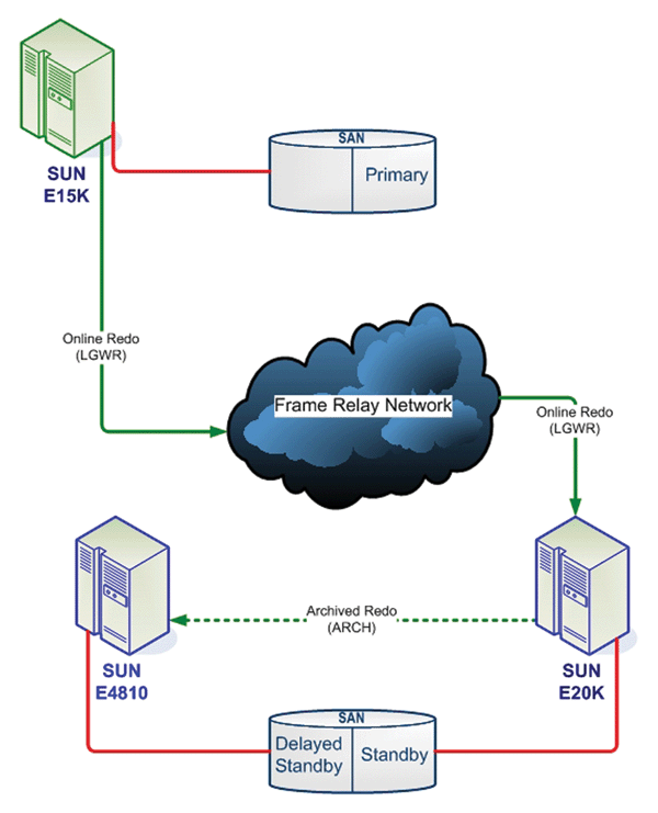 Example data guard network using two standbys