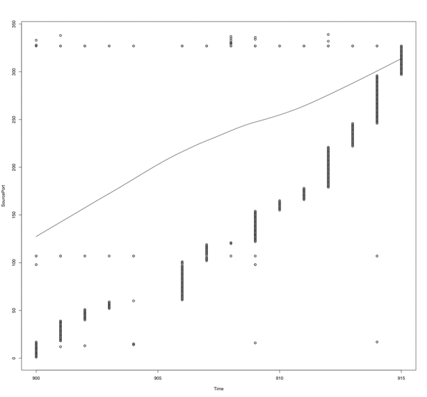 A scatter plot of SOURCE_PORT_TIME data
