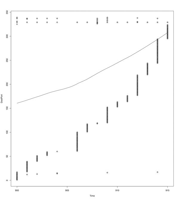 A scatter plot of DEST_PORT_TIME data