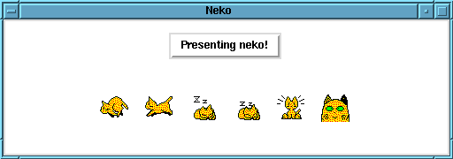 When you run neko, the following screen, depicting the six frames used by the application, is momentarily displayed: