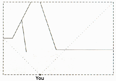 This is an awful cheat, but does make things faster. Don't be quick to condemn it, because when the folks at id Software wanted to put real-time ray-traced graphics into their game DOOM, this cheat is exactly what they did. Nothing in DOOM is ever underneath anything else, because DOOM is a two-dimen-sional universe, and now you know why. Sometimes things seem lower than other things, but that's because they're faking height just the way we are. DOOM sold at least 250,000 copies, and you can't laugh at that kind of success. (DOOM also uses some other tricks that we'll see later.)