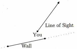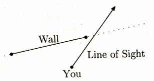 If t 1 < 0, or if t 1 > 1, then your line of sight misses the wall entirely, and you'll see past it to something else, like this:
