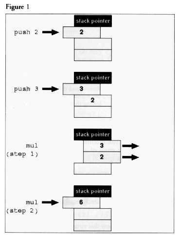 Figure 1 shows how the stack responds to the first three instructions.