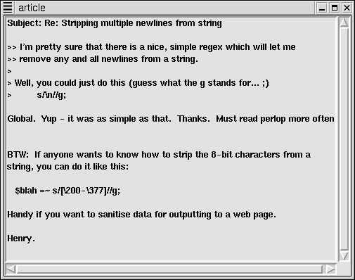 | Figure 1. A question and answer on comp.lang.perl.misc. |