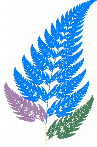 Figure 2: Fractal images drawn using an iterated function system: (a) snowflake; (b) fern.