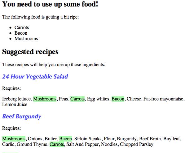 Figure 1: Suggesting recipes to use up food.